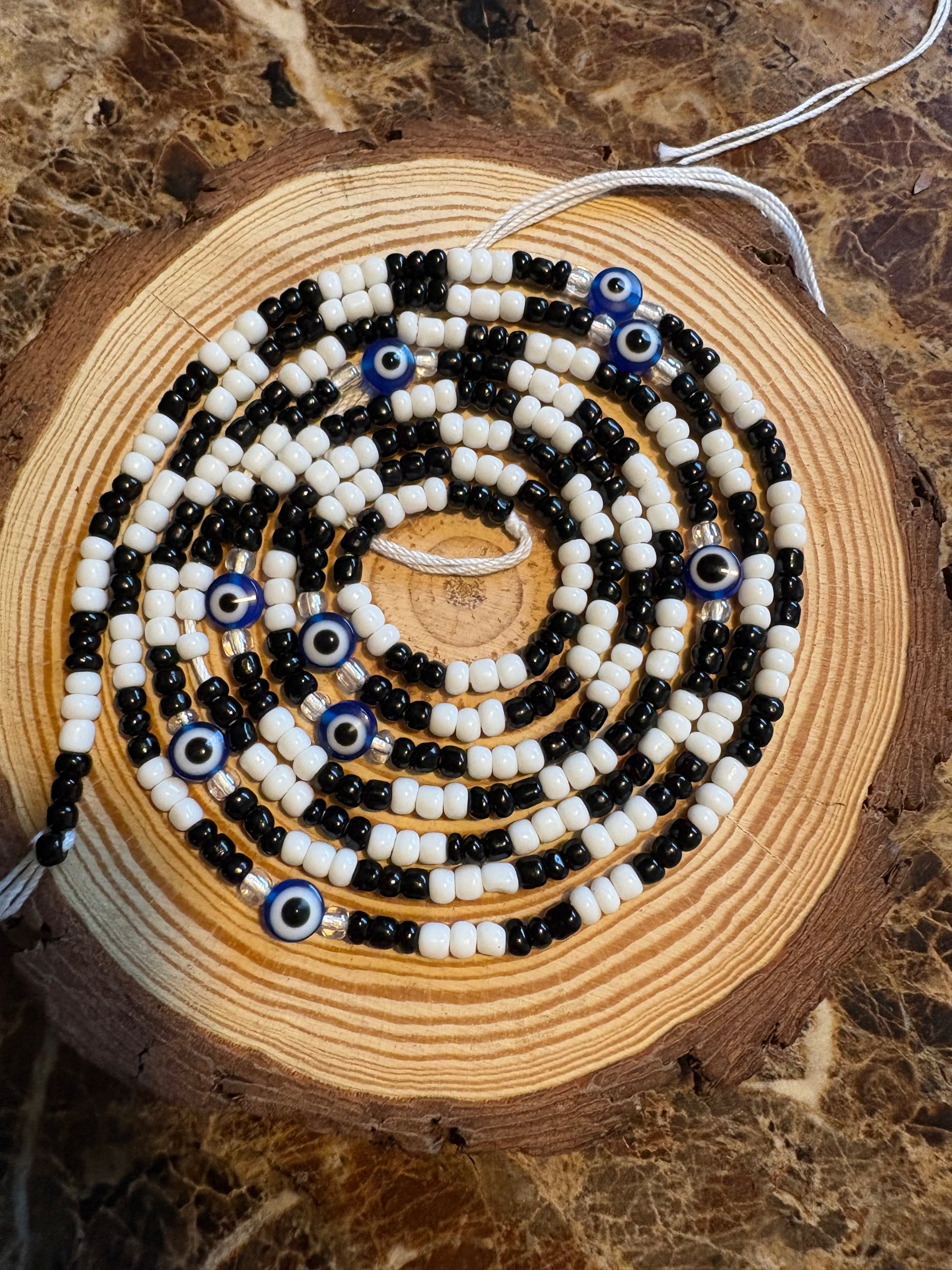 A striking strand of black and white beads with evil eye charms, representing the balance of light and shadow. Shadow Eye shields your energy from negativity while empowering you to embrace inner strength and hidden wisdom.